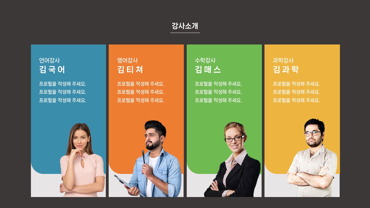 "여러분의 성장을 이끌어 줄 최고의 강사진! 👩🏫👨🏫" 처럼 각 과목별 강사,