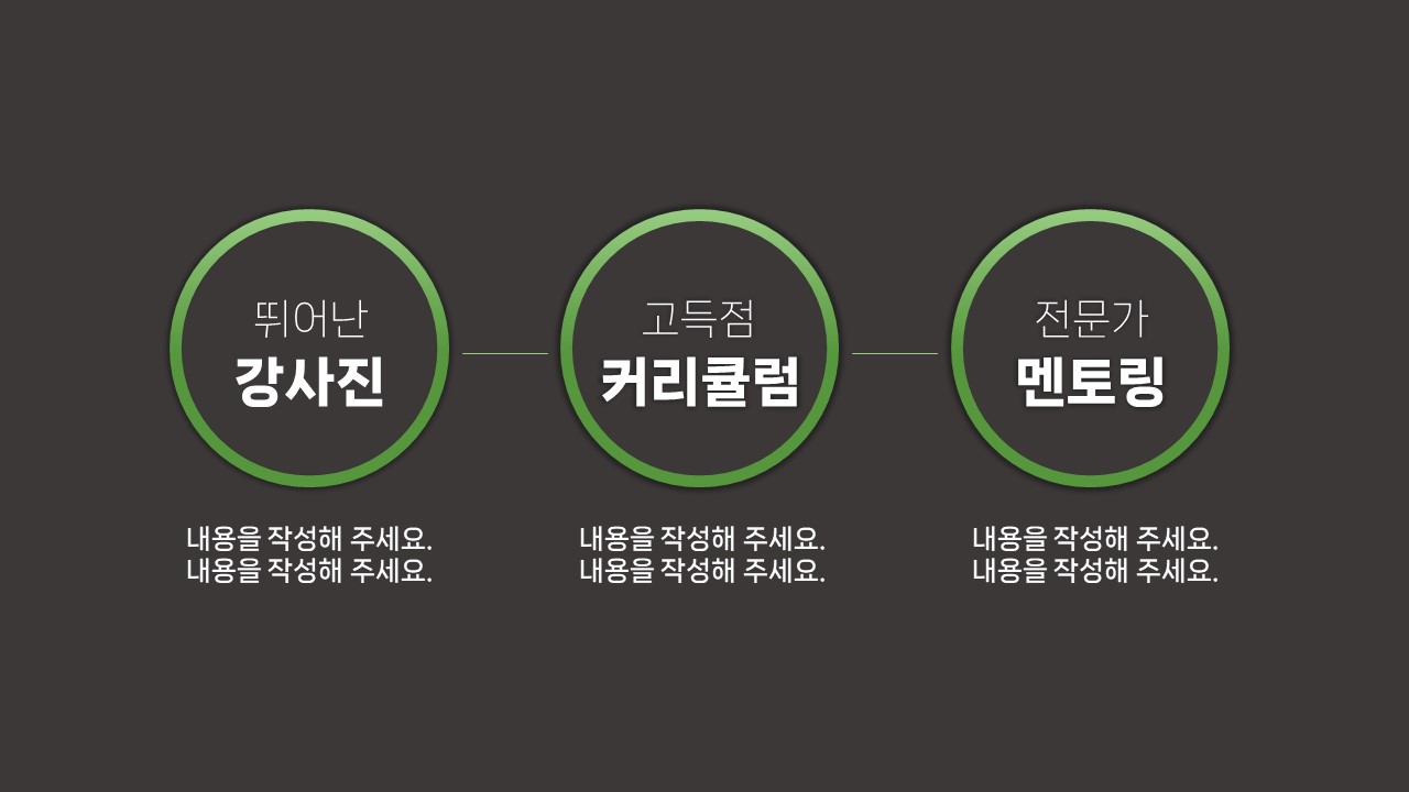 교육 프로그램의 주요 특징 또는 장점을 전달하는 슬라이드예요.