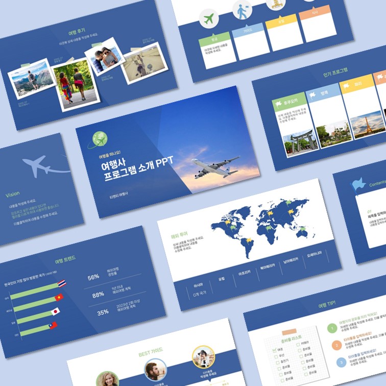 레이아웃이 돋보이는 '여행사 PPT 템플릿'을 소개해 드려요.