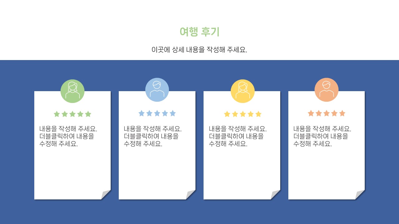 고객 후기의 주요 내용이나 긍정적인 피드백을 명확히 전달하는 디자인이에요.